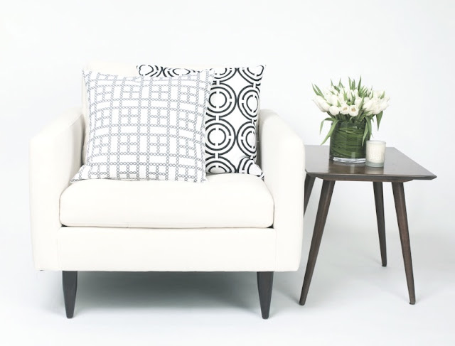 | Black & White classics - COCOCOZY Light Pillows on a Crate & Barrel Petrie Chair. (above) |